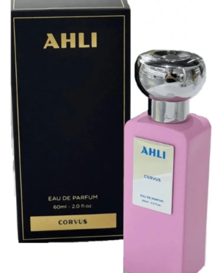 Ahli Corvus empieza como un festín de frutos rojos: fresas jugosas, frambuesas vibrantes y zarzamoras que explotan suavemente, acompañadas por ese toque cítrico de limón y mandarina que despabilan los sentidos. En el corazón, se abre un ramo floral femenino con la delicadeza de la violeta y la elegancia suave del jazmín, como si caminaras por un jardín al anochecer.